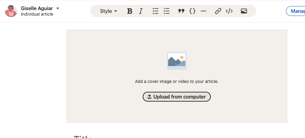 Here’s how you do it. From the Home screen, click on “Write article” under “Start a post” in the center. You can publish the article under your profile or your company’s profile. I chose to publish it under mine because I have over 4000 followers on my personal profile and way less on the company one. Go with the one that will get you the most views.